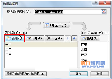 ②彈出選擇數據源對話框,單擊圖例項下面的添加按鈕。
