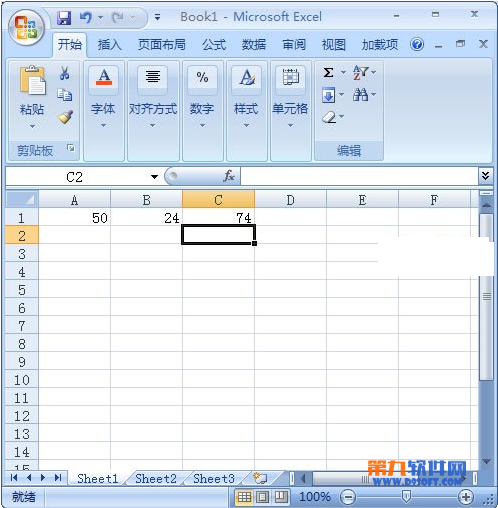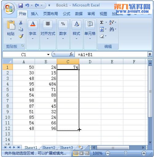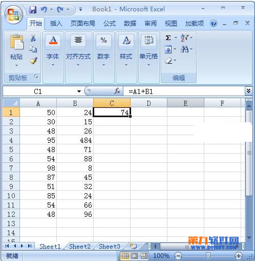 方法一:?jiǎn)蝹€(gè)求和方法(A1單元格與B1單元格中的數(shù)據(jù)相加,結(jié)果自動(dòng)顯示在C1單元格中):