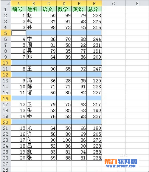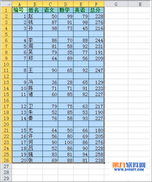 在刪除行之前我們需要找到大量的空白行,也就是定位。效果圖如下