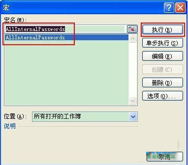 7、依次點擊菜單欄上的工具---宏-----宏,選AllInternalPasswords,運行,確定兩次;