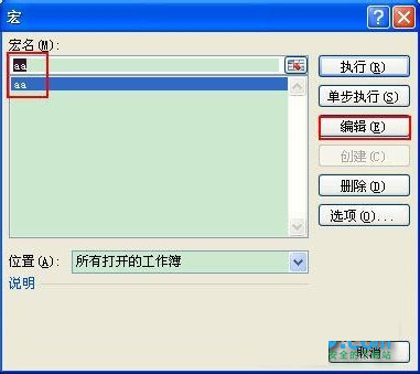 4、依次點擊菜單欄上的工具---宏----宏,選aa,點編輯按鈕;