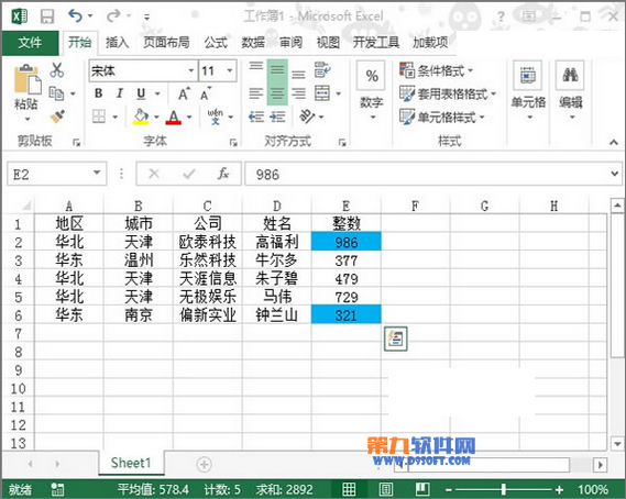第四步:最后,我們來測試看看,在原先E列數(shù)據(jù)中,最大值986和最小值321都高亮顯示出來了。