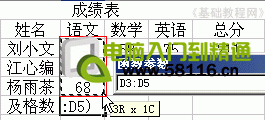 4)接下來是數據區域面板,從“78”向下拖到“68”,框選中三個人的語文成績;