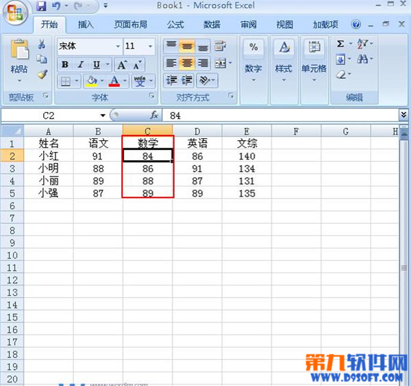 3、設置之后返回我們的工作表中,可以發現在數學的那一列中數據自小到大進行了升序,如下圖;