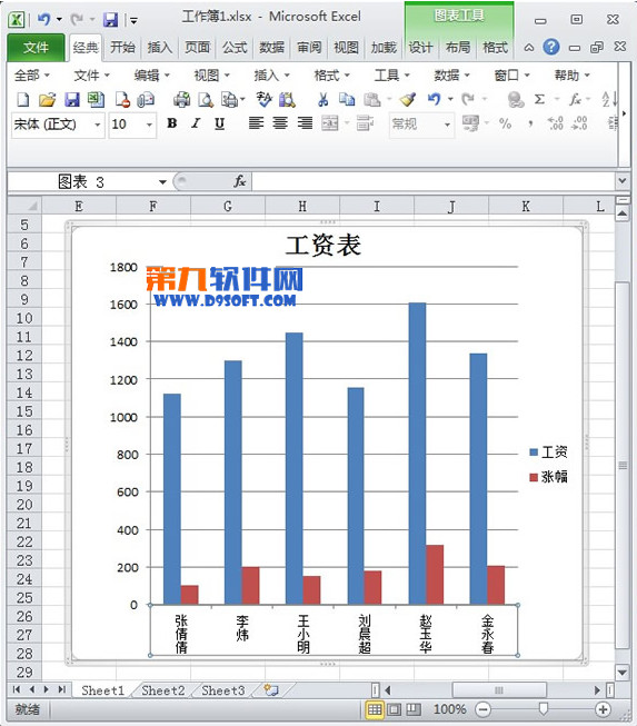 3、返回Excel編輯窗口,就可以看到圖表坐標軸標簽的文字方向發(fā)生了改變。