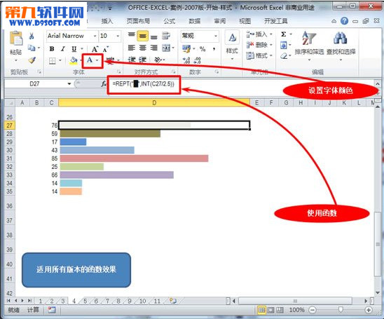 倒也不是,我們可以找個變通的辦法,用個REPT函數配合單元格字體顏色設置也可以達到類似效果: