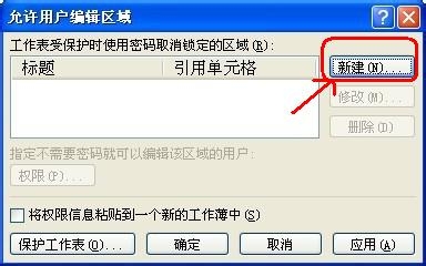 5、在“允許用戶編輯區域”界面中,新建該區域,然后設置密碼。設置好密碼后,確定。