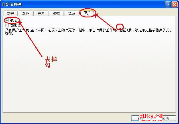 2、首先全選整個工作表,右擊鼠標,選擇“設置單元格格式”,進入“設置單元格格式”界面,然后選擇“保護”界面,去掉鎖定選項的勾“√”然后點擊“確定”。