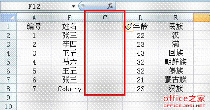 第二步、插入需要顯示重復(fù)提示的列,這里以C列為例。