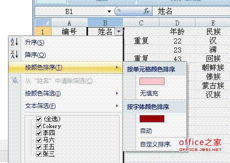 這個(gè)方法是Office2007自帶的,不用公式就可以實(shí)現(xiàn)查找重復(fù)數(shù)據(jù)的功能。