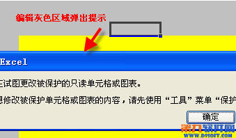 按上述步驟操作后,你試著修改黃色區域單元格:ok。你試著在黃色之外的區域修改或插入行/列,就會彈出如下圖所示的提示。