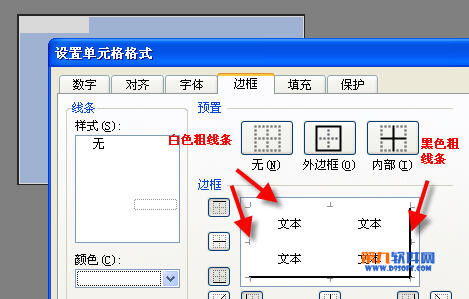 第3步:淺灰色區域設置邊線,右邊線和下邊線設置黑粗線條,左和上邊線設置白粗線條。