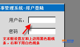 第5步:添加文本框。文本框的和窗體邊線設置正好相反。右和下邊線設置為白色邊線,左和上邊線設置為黑色邊線。