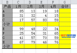 如下面的表中,要求在黃色單元格設置求和公式。