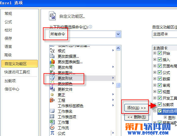 找回方法:文件 - excel選項 - 自定義功能區 - 查找到“更改圖形”添加到右邊的選項卡中。(選項卡或組需要是自定義的)