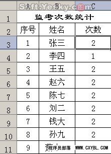 當然,還有一點也很重要,那就是考試安排和監考次數統計中的人名一定要一模一樣,否則,可要前功盡棄了。