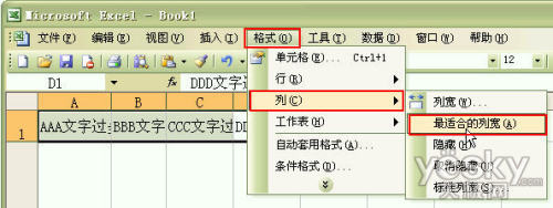 如果有多列需要調整,我們可以選中需要調整的單元格,選擇菜單“格式-列-最合適的列寬”,即可完成多單元格的列寬調整。