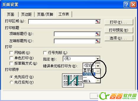 具體操作為:單擊“文件→頁面設置”命令,在出現的對話框中單擊“工作表”標簽,切換到“錯誤單元格打印為”所對應的下拉列表(如圖2),根據需要選擇“空白”或“--”即可,筆者選擇的“--”操作結果(如圖3)。確定后退出看看,自己打印的表格是不是漂亮多了。