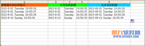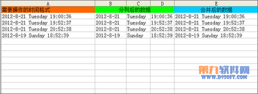 9、當然了,最終合并的樣式可以自己去設定,我們有了數據源就可以隨意的組合了,我之所以合并后的結果和考勤機導出的格式一樣,主要是為了驗證一下之前說的,一定要把時間,就是時分秒的部分分列成文本以后再合并,否則會出不一樣的結果。