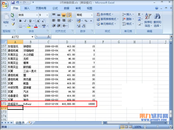 8、下面,我們來測試一下數據支不支持即時更新,在3月份的數據表格中,新插入一行數據。