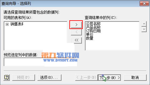 5、看到有一張可用的表,點擊向右箭頭,導入,一直點擊下一步直至完成。