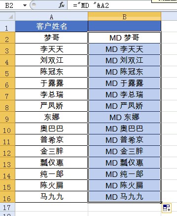3、選中2B單元格,向下拖拉復制至最后一行: