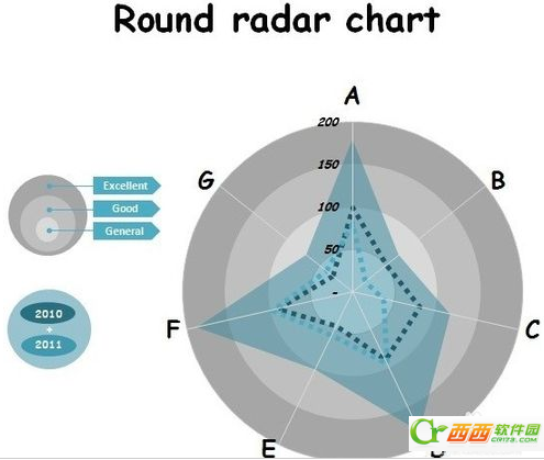 雷達圖 。可以對兩組變量進行多種項目的對比,反映數據相對中心點和其它數據點的變化情況;