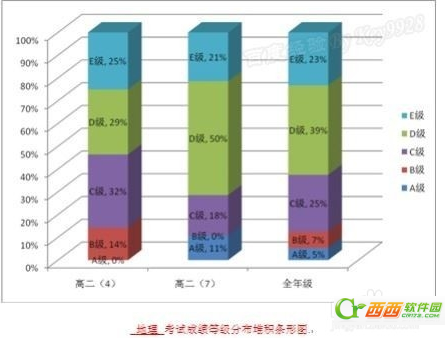 堆棧柱狀圖 。可以比較不同數值在總計中所占的比重,可選擇使用單位或百分比顯示。