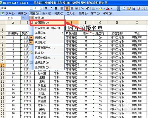 1、如圖所示我想將此表分三頁打印,每個(gè)班占據(jù)一頁紙,首先需要點(diǎn)擊“視圖”。