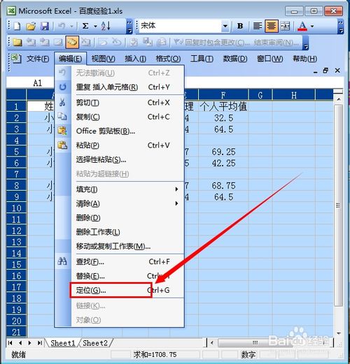 2、在菜單欄里點擊“編輯” 然后點擊“定位” 如圖