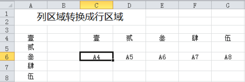 1、選中C6:G6,在編輯欄輸入=TRANSPOSE(A4:A8)