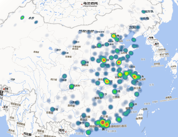 Power Map :在線地圖+在線演示+制作視頻,隨便來個中國壕熱力圖: