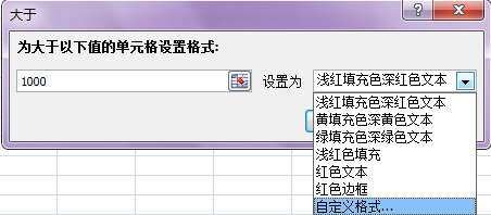 4、在“為大于以下值的單元格設(shè)置格式”框中輸入“1000”。