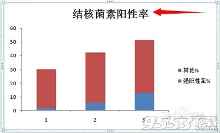 5、添加圖表標題。單擊圖表,然后單擊菜單欄選項卡【布局】/【標簽】/【圖表標題】按鈕,此時彈出下拉列表,單擊選擇【圖表上方】,在圖表上方即出現“圖表標題”文字編輯框;單擊激活文字編輯,輸入“結核菌素陽性率”。
