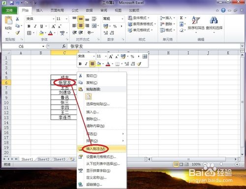 3、選定我們需要插入批注的單元格,然后點擊右鍵菜單,在出現的菜單中選擇“插入批注”。