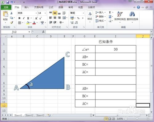三角函數很簡單,在上初中時我們就已經學過了,出來工作了,慢慢的很多上學學到的東西都忘記得差不多了,下面我們就來看看怎樣用Excel來制作一個能自動計算三角形邊長的工作表,解放解放我們的大腦。