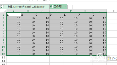 2、接著我們隨便編上幾組數據,我以12行10列為模板,然后選中這些數據