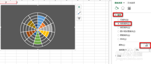 7、接著我們再美化,我們右鍵圖表空白處——填充顏色 ,選擇你想要的背景顏色