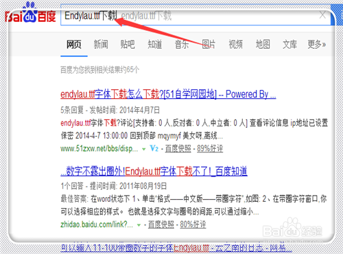 1、復制“Endylau.ttf下載”,粘貼到瀏覽器,點擊搜索。下載Endylau.ttf。