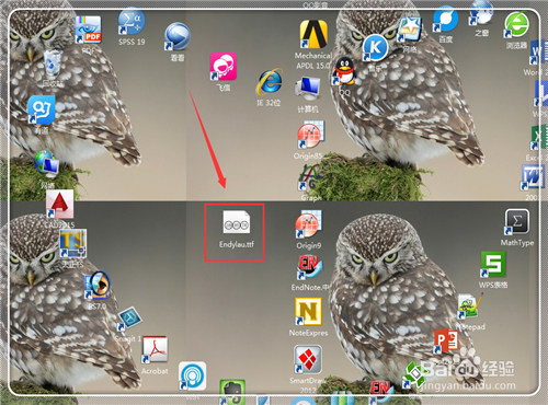 4、回到桌面,復制剛才下載的Endylau.ttf字體。返回到該字體庫。