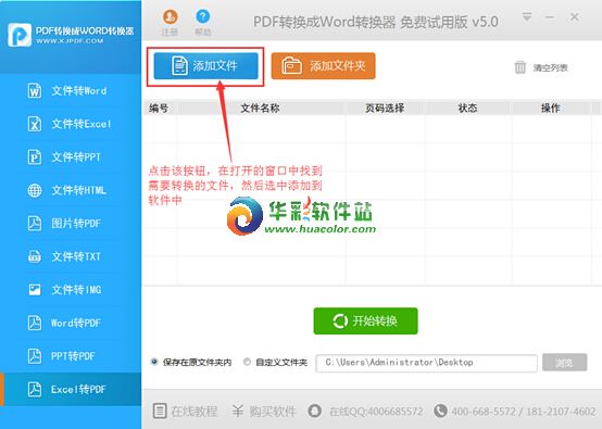 2、點擊軟件上方的“添加文件”按鈕,把需要轉(zhuǎn)換的文件添加進來,一次可添加多個文件。文件添加完成后選擇轉(zhuǎn)換后文件需要保存的位置。