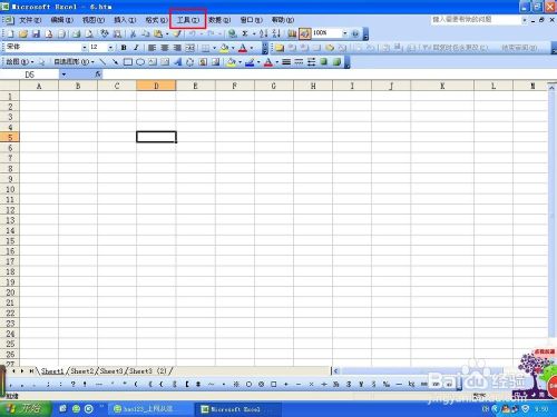 打開Excel工作表,點擊菜單欄中的【工具】,如圖所示