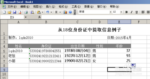 我們啟動Excel2003,錄入需要提取信息的身份證號碼。