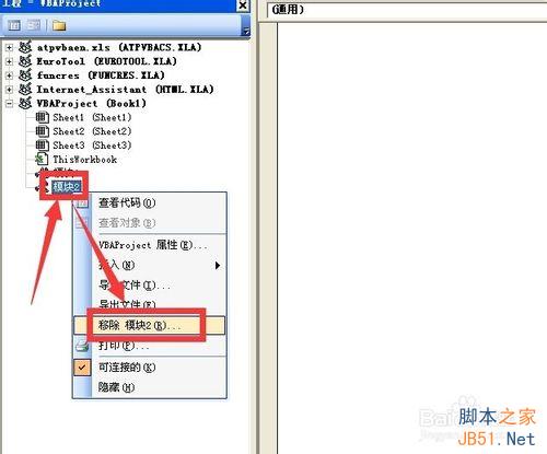 6、或者用另一種方法刪除模塊 在工程資源管理器中鼠標(biāo)右鍵單擊要?jiǎng)h除的模塊 在彈出的的快捷菜單中選擇移除模塊命令 刪除了模塊同時(shí)也將刪除保存在模塊中的所用代碼程序