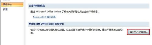 4、在右側(cè)出現(xiàn)選項中點擊進入“信任中心設(shè)置”。