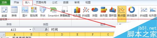 4、然后將上方的菜單欄切換到“插入”選項中,點擊“散點圖”下方的小三角形,選擇其中帶有平滑線的曲線類型。