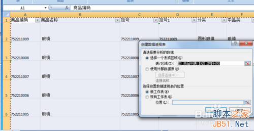 3.選中透視表后會彈出一個(gè)這樣的界面(如圖所顯),選擇放置數(shù)據(jù)表的位置,新工作表,或者我們也可以把它弄到自己想要的表格中,那么就選現(xiàn)有工作表,然后點(diǎn)擊確定