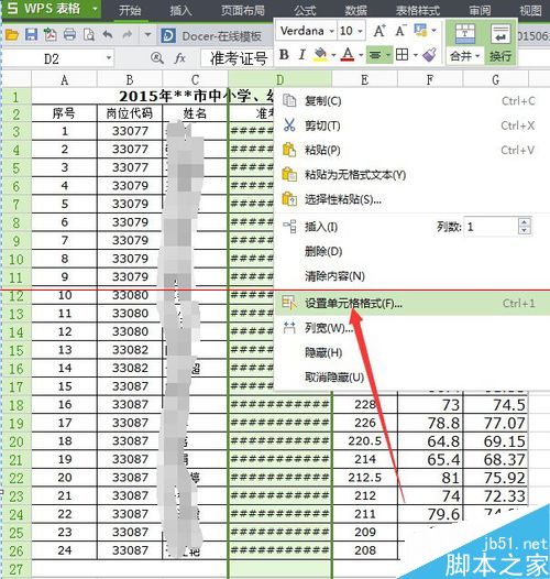1、如圖,下載的表格,準考證號這一列完全看不到。