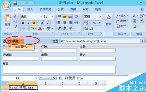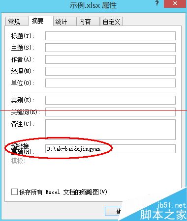 3、在屬性摘要中的超鏈接基礎(chǔ)中填入之前連接文件所在目錄的地址。