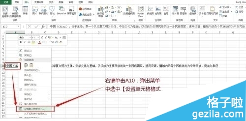 右鍵單擊A10,彈出菜單中選中【設置單元格格式】